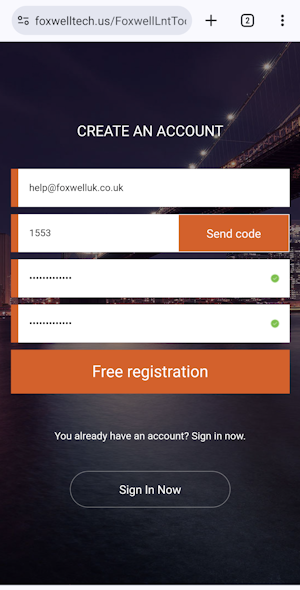 - If you already have a Foxwell account, click Sign In Now at the bottom of the page - If not, fill in your email address and press Send code ![]()