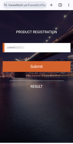 12. You should now see a page titled 'Product Registration', with the tool Serial Number displayed