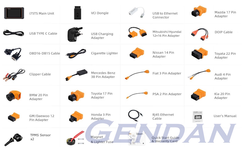 It is important to record data for long periods of time to capture intermittent problems not just seconds or several minutes. With the i75TS, you can record for hours to make sure you capture the intermittent fault whenever it happens. Each recording will show when it was recorded, what vehicle and what controller it was recorded from, what parameters were recorded. Playing back a recording is just like using the scan tool on a live vehicle. Playback speed and direction (forward or reverse) can also be controlled. Actuations, Adaptations and Control Module CodingThe i75TS cannot only read your codes, but it can also actuate components, run system tests and program control modules.Reading the trouble codes from your vehicle is easy, but without live data, bi-directional controls and other special functions, you may not have enough information to get the problem fixed right. The i75TS allows you to temporarily activate or control a vehicle system or component. With the i75TS, checking of electronic components such as switches, sensors, relays, & actuators becomes a simple task, saving you time and labour costs. Provided that a module can be re-coded, i75TS allows for the coding and programing of a replacement control module or changing previously stored incorrect coding, as expensive factory tools do. In addition, on some makes of car it lets you recode the immobiliser transponder in a mechanical key or key fob (you may need the security codes for your car to do this - the i75TS does not retrieve those codes from the car). With these dealer tool level functions, the i75TS is an invaluable tool that allows you to perform complicated repairs faster and easier, boosting your bottom line and customer satisfaction. Software UpdatesThe Foxwell i75TS now comes with three years of free software updates from the date of purchase - the most generous free update period in the industry.At the end of the 3 years the unit will not "time-out" - it will continue to function with the currently installed software - you will just lose access to further software updates until you purchase a software update pack. Package Contents
